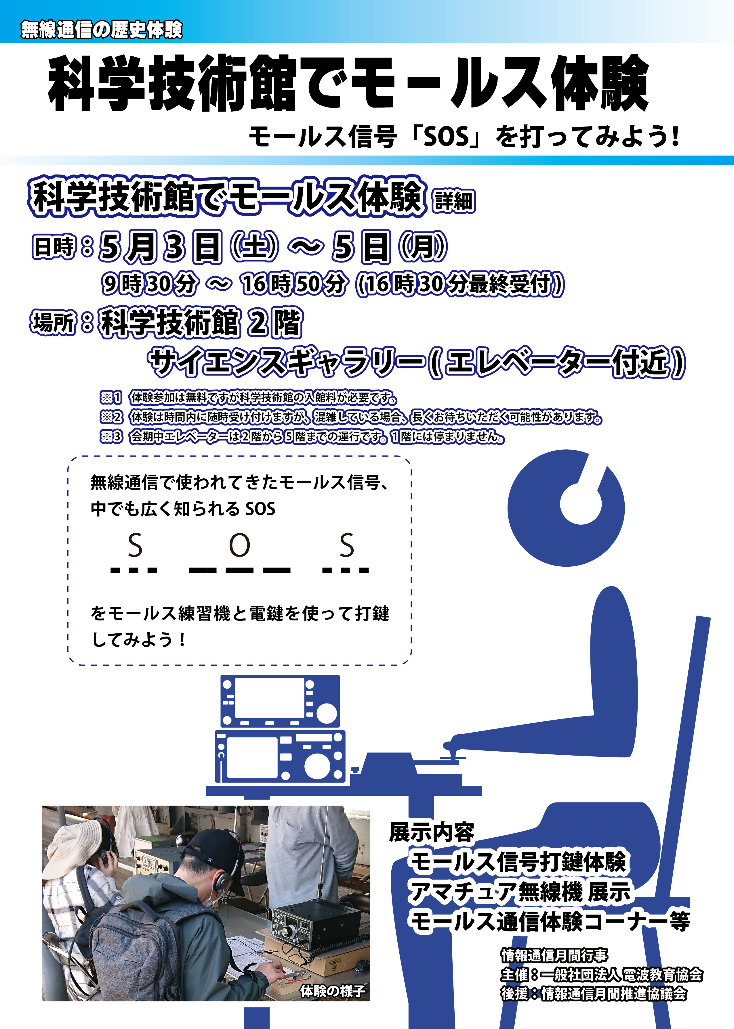 千代田区 科学技術館館内にてモールス打鍵体験を行います。。